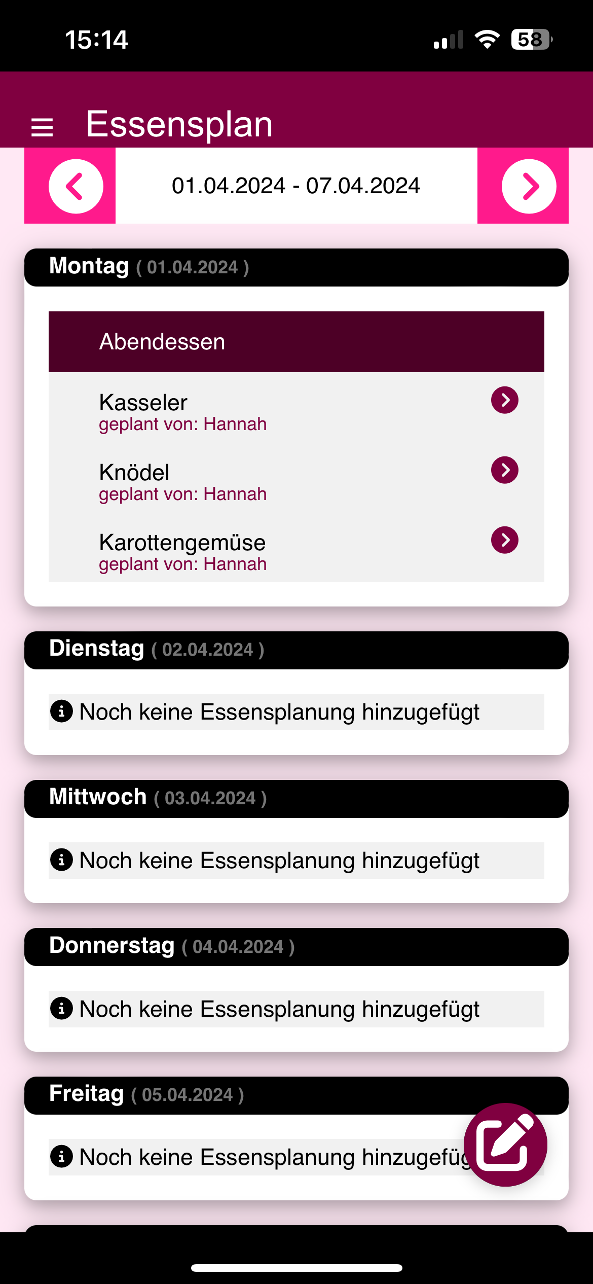 Dank der Synchronisations Features wirst du nie wieder von deinen Kindern gefragt was es zu essen gibt, denn sie können es einfach nachschauen. Auch der Einkaufsplan kann so innerhalb der Familie oder Freunden geteilt werden.